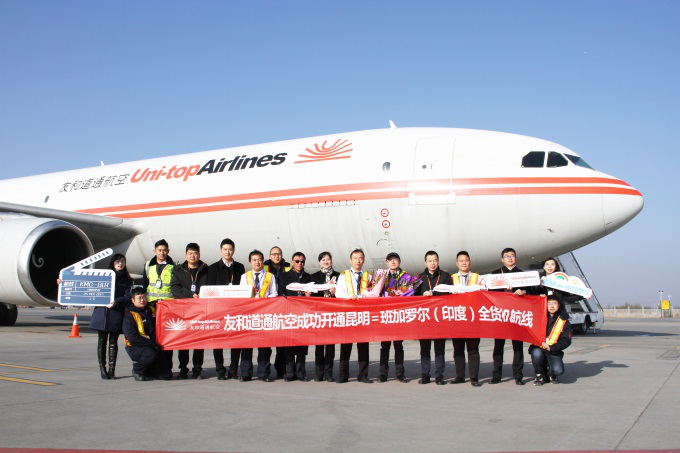 2017年12月25日,友和道通航空順利開通“昆明=班加羅爾”全貨機航線,這是中國大陸地區唯一直飛印度班加羅爾的定期全貨機航線。該航線采用空客中短程全貨機A300-600執飛,每周2班(周一和周五),貨物以高端電子產品、手機配件、通訊設備配件、紡織服裝類等為主。