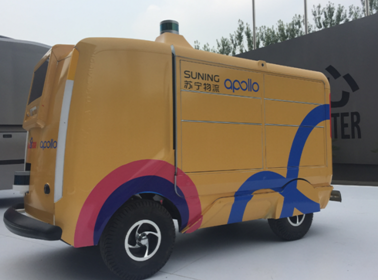 (蘇寧物流與百度apollo合推的無人駕駛小車)