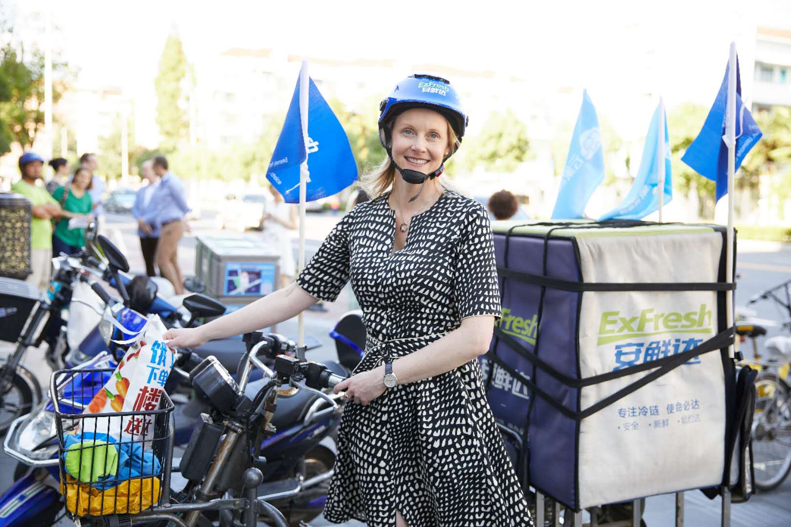 隨后,佩戴藍色頭盔的Courtney Sarah女士從安鮮達仙霞倉出發,一小時后即到達收件客戶倪小姐家中,完美達成了本次塔斯馬尼亞州牛肉和澳橙的超新鮮派送。
