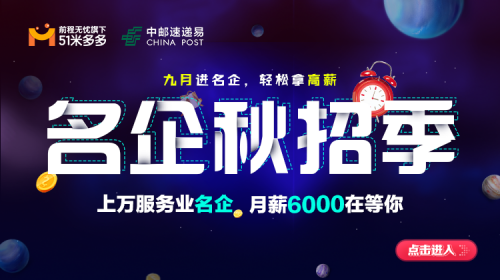 一年一度的秋招季來襲,不少人再度成為求職大軍中的一員。只是如何才能殺出重圍,進入心儀的名企?近日,中郵速遞易于攜手前程無憂旗下城市服務業招聘平臺“51米多多”聯合開展“名企秋招季”活動,為用戶求職保駕護航!