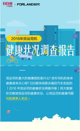 活動(dòng)之初,為更好地了解當(dāng)前貨運(yùn)司機(jī)健康狀況,日日順快線聯(lián)合福田汽車采用網(wǎng)絡(luò)定量問(wèn)卷的方式,針對(duì)貨運(yùn)司機(jī)職業(yè)健康情況展開(kāi)了線上調(diào)研。調(diào)研共收集有效樣本量19852人,在整合系統(tǒng)后臺(tái)數(shù)據(jù)后,最終發(fā)布了《2018年貨運(yùn)司機(jī)健康調(diào)查報(bào)告》,詳細(xì)解讀了當(dāng)前貨運(yùn)司機(jī)健康狀況同時(shí),引起了行業(yè)內(nèi)及眾多社會(huì)人士的高度關(guān)注!