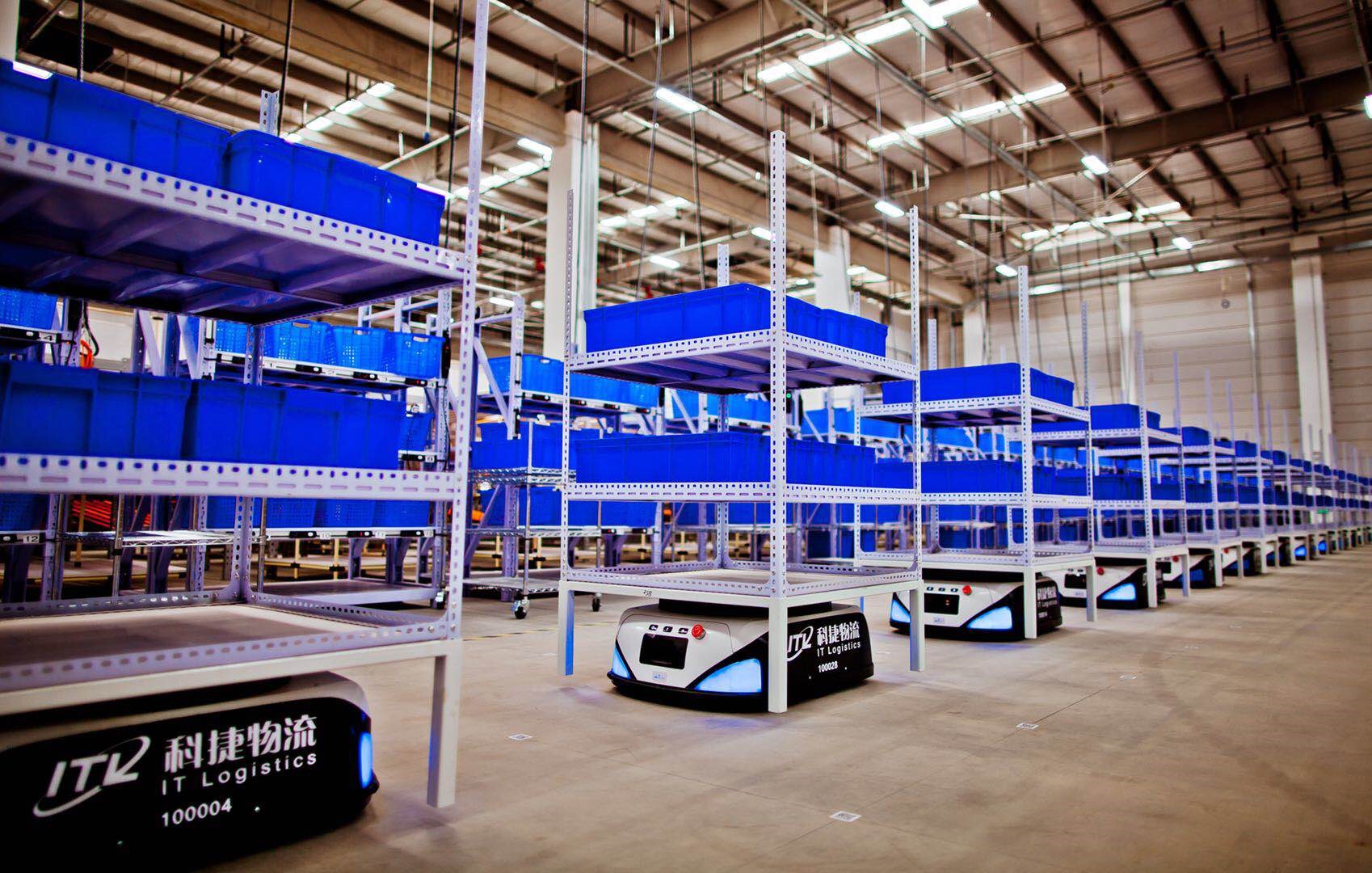 科捷“人機(jī)共舞”倉(cāng)實(shí)景圖