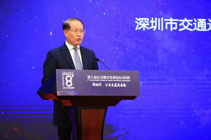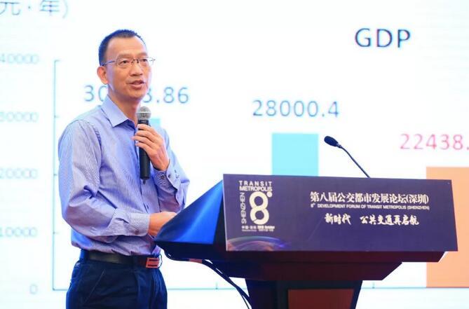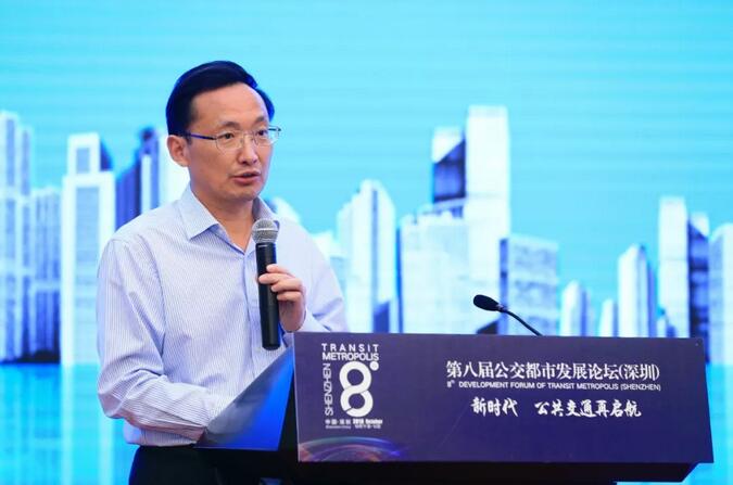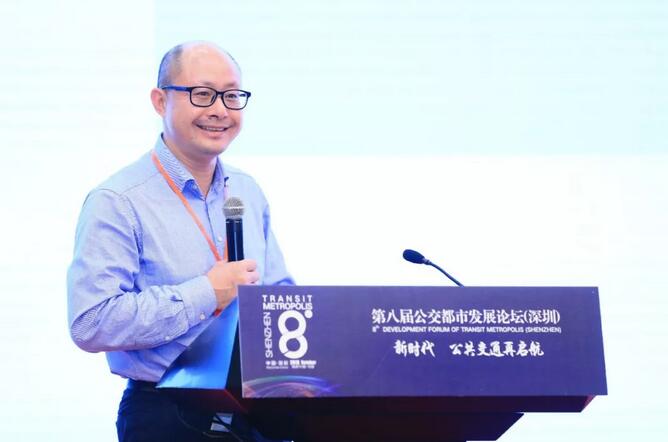 在主題演講環(huán)節(jié),首先上臺(tái)的是深圳市交通運(yùn)輸委員會(huì)(市港務(wù)管理局)黨組成員、副主任徐忠平,他帶來(lái)《深圳公交都市發(fā)展的實(shí)踐與思考》的演講。