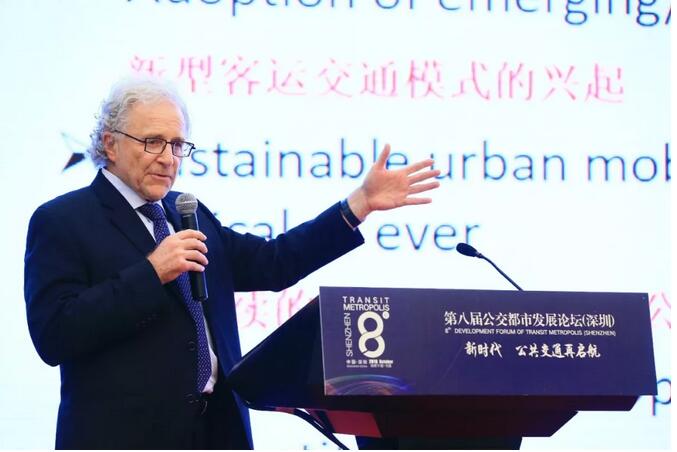 深圳市巴士集團(tuán)有限公司總裁王慧農(nóng)先生帶來(lái)的演講題目是《保衛(wèi)深圳藍(lán),踐行綠色發(fā)展理念——深圳巴士集團(tuán)實(shí)現(xiàn)出租車(chē)全面電動(dòng)化》。王慧農(nóng)先生表示,深圳巴士集團(tuán)是深圳唯一一家實(shí)現(xiàn)全面電動(dòng)化,9月28日4681臺(tái)輛車(chē)實(shí)現(xiàn)全面電動(dòng)化。目前深圳巴士圍繞全面電動(dòng)化準(zhǔn)備在治理化、標(biāo)準(zhǔn)化和行業(yè)內(nèi)產(chǎn)業(yè)化方面打造一個(gè)優(yōu)化的模式和持續(xù)的生態(tài)網(wǎng),深圳巴士集團(tuán)已經(jīng)率先把生態(tài)鏈和生態(tài)網(wǎng)建立起來(lái)。未來(lái)深圳巴士集團(tuán)也將積極參與和支持深圳市MaaS行動(dòng),積極改變和調(diào)整模式。