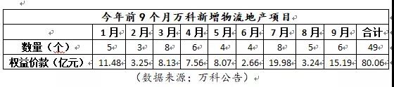 7月收購的7座冷庫只是萬科今年在物流地產領域布局的冰山一角。據掌鏈傳媒初步梳理,前9個月,萬科新增物流地產項目49個,合計需支付權益價款80.06億元。