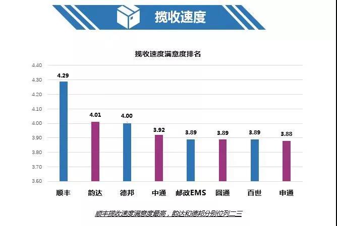 三、攬收速度:順豐、韻達、德邦快遞表現良好