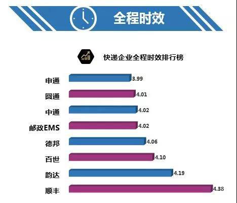 五、全程時效:順豐、百世、韻達、德邦快遞表現較好