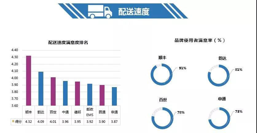 六、配送速度:順豐速度最快,申通評分最低
