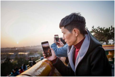 傍晚,扎西站在景山上俯瞰故宮,他用手機拍下北京的落日,“站這心里開闊得很,天氣也和拉薩差不多,感覺(北京和拉薩)很近。”