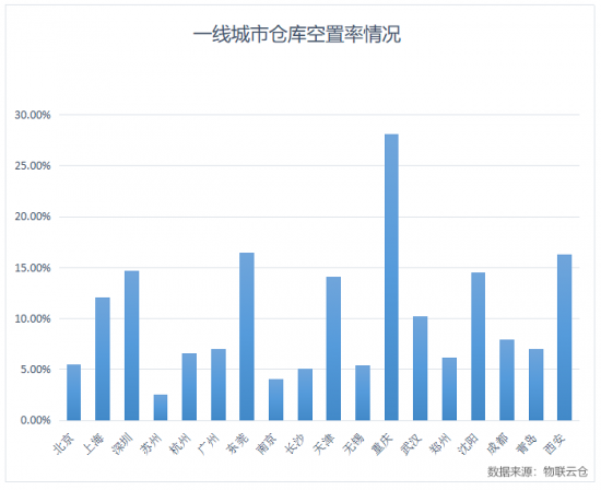 圖4 2018年11月全國(guó)一線城市倉(cāng)庫(kù)空置率情況