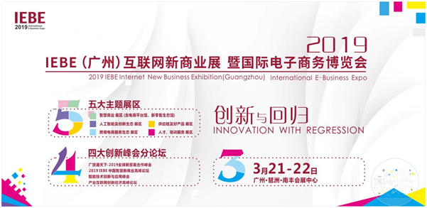 2019IEBE由廣東省網商協會主辦,為參展企業提供約2萬平米的空間,設置五大主題展區:智慧商業展區(含新零售生態館、電商平臺商城館),跨境電商服務生態展區,人工智能及創新生態展區,供應鏈及好產品展區,人才、培訓服務展區。