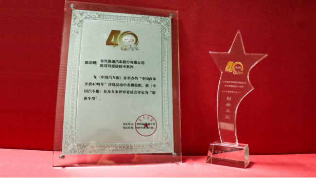 【歐馬可超級(jí)輕卡榮獲“改革開(kāi)放40周年創(chuàng)新車(chē)型”獎(jiǎng)】