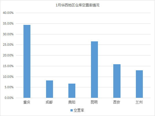倉庫空置率最高的城市為重慶、南昌、昆明,均超26%。與上月相比,昆明倉庫空置率變化不大;重慶倉儲市場長期處于供大于求狀態,倉庫空置率居高不下,延續上月上漲趨勢;南昌倉庫資源持續相對充足,倉庫空置率長期處于高位,加之,1月份部分工廠陸續停工,導致倉庫租賃需求有所下降,空置率有所上漲。