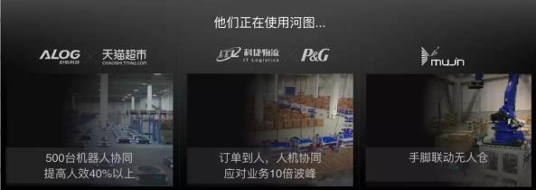 據了解,目前河圖系統已經在天貓超市、科捷物流、寶潔等合作方的倉庫中進行了實際使用。在天貓超市天津倉中,與三種不同類型的500臺機器人的協同作業,將現階段倉庫效率提升了40%。在另一個應用場景中,河圖與工業機器人公司MUJIN打造手腳聯動無人倉,讓機器人具備貨物抓取能力,進而實現了全流程無人化。