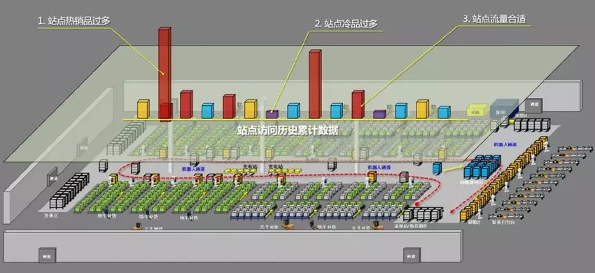 除此之外,曠視河圖還有個流量分析的功能,可在路徑規劃、庫維優化、負載均衡、作業調度層面提供大量優化算法,以適配不同的業務場景。彭廣平表示,通過這一功能,曠視河圖會對每個區域的實時流量進行一些統籌的規劃,比如說A區這會兒流量比較大,可能B區會分一些流量出來。當然一般在大倉里面不僅僅是兩個區,會分很多區,這里面也是讓整個倉庫更加協同、更加平穩。
