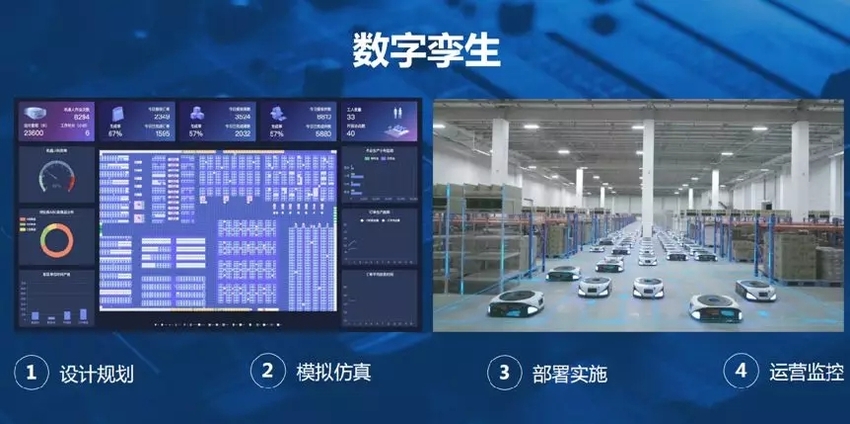 數字孿生是指實現虛擬世界與真實世界的一致化,盡可能逼真地仿真模擬,包括對于機器人的模擬、設備的模擬、訂單的模擬、對于人的模擬、對于異常事件的模擬,從而實現線上的仿真規劃,逼近真實執行系統的效率。