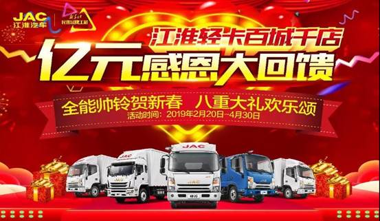 今年2月20日,江淮輕卡為感恩全球300萬用戶的信賴,特別在全國范圍內(nèi)啟動(dòng)了百城千店億元感恩大回饋活動(dòng),從產(chǎn)品促銷、售后服務(wù)、金融政策等方面,為用戶定制了價(jià)值八億元的八重豪禮。活動(dòng)啟動(dòng)至今,超20000名客戶享受到了實(shí)實(shí)在在的優(yōu)惠,進(jìn)一步提升了江淮輕卡品牌的關(guān)注度。除了感恩回饋活動(dòng),同期進(jìn)行的“汽車下鄉(xiāng)”補(bǔ)貼也點(diǎn)燃了農(nóng)村用戶的購車熱情,雙重福利將感恩回饋活動(dòng)推向高潮。