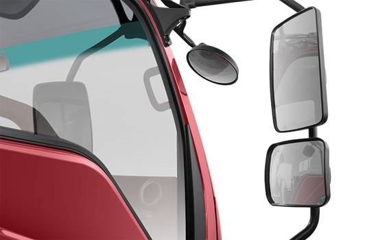 寬體駕駛室,空間變得舒適的同時也意味著視覺盲角更多,解決方法是安裝更大面積的后視鏡,這樣以來就解決了視覺盲區(qū)問題,而巨大的前照地補(bǔ)盲鏡更是解決了車輛前方的盲區(qū)問題。