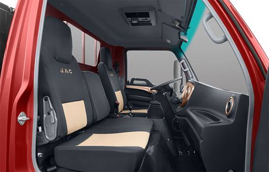 寬體駕駛室使得駕駛室空間增加了很多,坐三個人的駕駛室空間仍舊很寬敞。值得一提的是中間座椅是折疊式,沒有乘客時只要放平,就是一個很好的杯架。