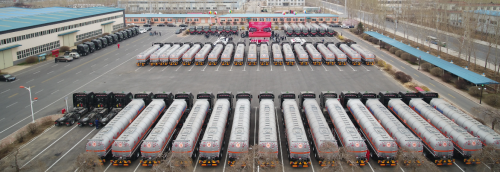 同時,在產業鏈增值保障方面,福田戴姆勒汽車長期專注于“危化品園區、化工園區樣板”的建設及投入,全力實現平臺搭建,聚焦“煉化企業、物流企業、主機廠”等多級平臺合作互通,幫助客戶打通上下游業務,建設危化品價值鏈生態圈層。“強強攜手促發展 百車齊發譜新篇”,活動現場,百臺車輛鳴笛、啟動,為東北區域危化品運輸,注入新鮮活力的血液,助力客戶安全高效運營。