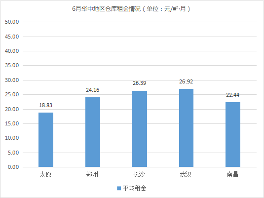 倉庫平均租金最低的城市為太原、石家莊、蘭州,均低于21元/㎡·月。相較5月,蘭州、石家莊倉庫租金波動不大;太原因受618年中大促影響,租戶集中在5月租倉,6月倉庫需求逐漸呈回落態勢,導致倉庫平均租金有所下降,降幅為5.85%。