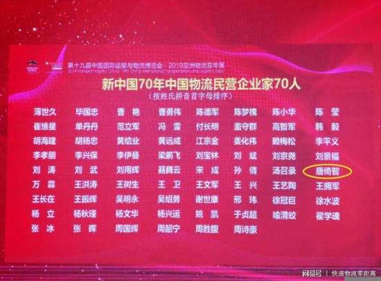 70年風雨兼程,70年滄桑巨變。為了全方位總結我國物流行業發展成果,充分展現物流企業家風采,近日由中國物博會組委會等相關單位發起的“新中國70年中國物流民營企業家70人推選活動”(簡稱“70人推選活動”)上,唯品會高級副總裁、品駿控股有限公司總經理唐倚智,憑其在物流業的杰出貢獻和奮斗精神成功上榜,成為“新中國70年中國物流民營企業家70人”之一。