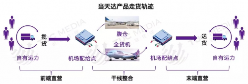 以限時達產品為例,為了保證服務質量,跨越選擇了強管控、重投入的全網直營模式,在運營打法上融合3PL與網絡型快遞企業的優點,通過快速反應的接送貨機制和高時效的空運干線運輸網絡,來保證運營時效和穩定。