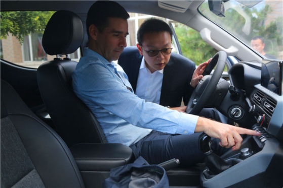 在紀(jì)念活動(dòng)儀式禮成后,以智利駐華大使路易斯•施密特先生和智利農(nóng)業(yè)部為代表的智利代表嘉賓對長安凱程F70展示出了濃厚興趣,紛紛進(jìn)入車內(nèi)感受、了解整車情況,還饒有興致地駕車體驗(yàn)。整個(gè)過程中,頻頻點(diǎn)頭及滿意的笑容是對長安凱程F70最直接的評(píng)價(jià)。