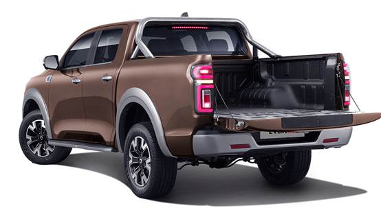 長城炮貨箱尺寸為1520*1520*538mm,標配阻尼后尾門、隱藏式踏板、坡道梯卡槽,可選裝不同形式的貨箱蓋。