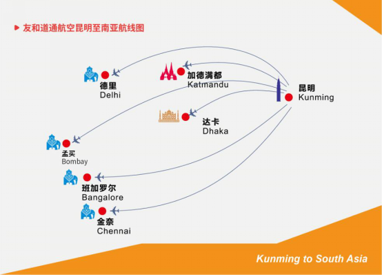 友和道通航空自2011年開航以來,一直致力于深挖南亞、東南亞等“一帶一路”沿線區域的市場潛力。截至目前,友和道通航空已開通昆明至印度(德里、孟買、金奈、班加羅爾)、孟加拉(達卡)、越南(河內)、尼泊爾(加德滿都)、阿聯酋(迪拜)等數條國際貨運航線,每周往返達60余班,航線數量和航班班次均位于行業前列,在“一帶一路”沿線市場尤其是南亞、東南亞地區建立了極具影響力品牌。2018年,友和道通航空憑借在國際貨運方面的努力,被云南機場集團評為“2018國際航空貨運突出貢獻獎”。未來,在航空市場發展新格局下,友和道通航空將深挖市場新機遇,為實現區域內更為高效的互聯互通貢獻力量。