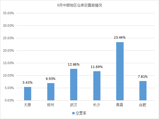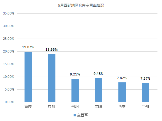 相較8月,成都安博青白江物流園(5.1萬㎡)、豐樹青白江物流園(11.7萬㎡)新建倉儲項目竣工交付,拉動當地倉庫空置率上升幅度較大,升幅為6.65%。