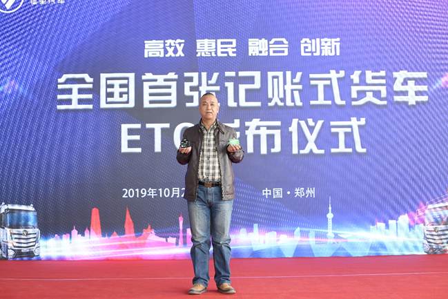 10月28日,在交通運(yùn)輸部路網(wǎng)中心指導(dǎo)下,福田汽車、貨車之家科技有限公司(籌)、河南視博電子有限公司在河南鄭州聯(lián)合召開新聞發(fā)布會(huì),宣布成功發(fā)行全國(guó)首張記賬式貨車ETC?,F(xiàn)場(chǎng),來自河南鄭州的車主馬中杰,在福田戴姆勒汽車經(jīng)銷商河南聚通的7S服務(wù)網(wǎng)點(diǎn),為自己的歐曼超級(jí)重卡領(lǐng)到了全國(guó)第一張貨車車載電子標(biāo)簽和ETC記賬卡套裝,并在服務(wù)人員的幫助下,完成了車載電子標(biāo)簽激活。這一刻,馬中杰的卡車能夠像小客車一樣高速公路不停車?yán)U費(fèi)通行,真正實(shí)現(xiàn)不停車、一腳油門暢行全國(guó)高速公路,標(biāo)志著全國(guó)首張帶電子標(biāo)簽的貨車ETC記賬卡正式誕生。