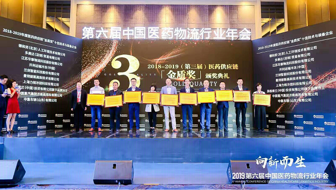 2019年11月13-15日,2019第六屆中國醫藥物流行業年會暨第三屆醫藥供應鏈“金質獎”頒獎典禮在山東濟南成功舉辦,與會單位包括醫藥生產企業、醫藥經營企業、第三方物流企業、醫藥供應鏈設備生產商在內的超500家企業齊聚一堂,1000余位代表嘉賓共襄盛宴,多美達同在受邀之列。與此同時,多美達憑借著“主動制冷式冷鏈運輸箱”產品的突出表現和優質性能,得到了醫藥供應鏈行業和專家們的認可,榮獲《2018-2019年度醫藥供應鏈“金質獎”十佳技術與裝備企業》獎勵。