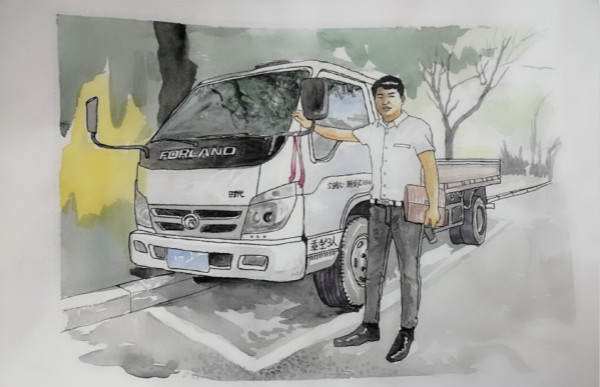 不過,在第四屆“出彩卡車人”活動(dòng)中,我們又重新認(rèn)識了郭海濤。他是一位頗具才藝的卡車人,用畫筆描繪出了他和父親這兩代人的“時(shí)代情”。
