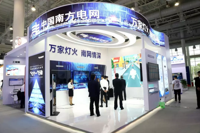 國家電網有限公司利用展板、觸屏、視頻等手段,以場景化方式展示在數聚互鏈、智慧物聯、優化營商等方面取得的建設成果,展現國網5E供應鏈平臺、電工裝備智慧物聯平臺建設情況,現場演示了電子投標機、e物資移動應用、物資結算機器人等裝備及應用場景。