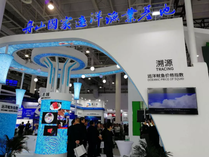 以場景化的方式展現舟山國家遠洋漁業基地現代化供應鏈建設的協同高效。凸出“務實、創新、協同、超越”的基地精神,以曲面屏幕全方位地宣傳基地的發展、政策支持,以高清液晶電視展現中國遠洋“魷魚指數”,以蜂巢燈箱展示供應鏈上下游合作企業及跨界合作成功案例。