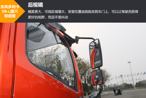 多利卡D6采用框架式鏡桿和加寬后視鏡,可視區(qū)域增大到135°,側(cè)、后部視野盡攬無余,足以應(yīng)對(duì)2550mm極限外寬貨廂;雨刮采用了無骨雨刷,相較傳統(tǒng)的有骨雨刮,質(zhì)量更輕,刮水效果也會(huì)更好,且刮臂加長(zhǎng),刮刷區(qū)域增大18%,雨天行車更安全。