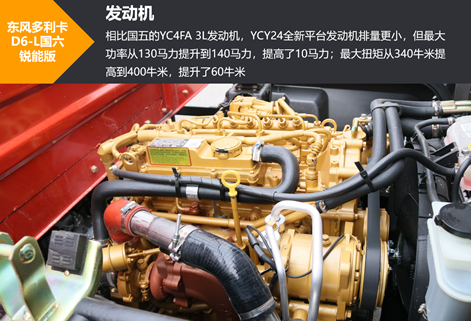 動(dòng)力方面,多利卡D6采用了玉柴發(fā)動(dòng)機(jī),最大馬力140,最大扭矩為400N·m,經(jīng)濟(jì)轉(zhuǎn)速區(qū)間為1400~2000rpm,還可選擇全柴130馬力發(fā)動(dòng)機(jī);匹配了萬里揚(yáng)的6擋手動(dòng)變速器,擋位清晰,換擋平順。