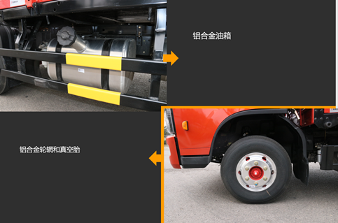 這輛多利卡D6在輕量化上下足了功夫,車輛的輪輞、變速箱、儲(chǔ)氣筒、油箱等部件均采用了鋁合金材質(zhì);還有高強(qiáng)度鋼車身和真空胎,進(jìn)一步降低了車輛自重。