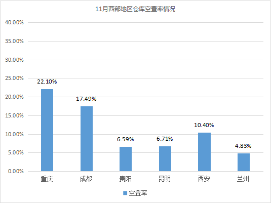 倉庫空置率最高的城市為大連、重慶,均高于20%。相較10月,因業務收縮和合同到期,大連部分倉庫租戶在本月退倉,導致當地倉庫空置率有所上漲,漲幅為12.92%;重慶因部分物流園區項目建成交付,如菜鳥網絡(4萬㎡)、嘉民重慶(6.5萬㎡),導致倉庫空置率有所上漲,漲幅為5.91%。