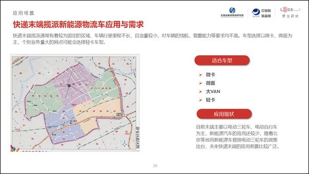 城市配送是當前新能源物流車應用的主要場景,其對距離要求短、速度要求低、性能要求不高的特點,符合新能源物流車當下的發展階段。我們的調研發現,新能源物流車已經在快遞、電商、快消零售、大件家居、醫藥物流、搬家、農產品物流甚至生鮮冷鏈物流等城市貨運的各個細分領域得到了廣泛的應用。
