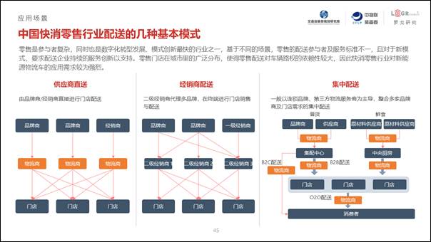 快消零售是城市配送中最重要的組成部分之一,也是模式最復雜、參與者最多的領域。由于零售門店覆蓋到城市里的所有地區,因此對于燃油車有路權限制的區域來說,新能源物流車的應用是快消零售配送企業的最優選擇,該領域對新能源物流車的需求較為強烈。而像深圳一樣設立了燃油物流車全天禁止進入的綠色物流示范區的城市,對于示范區內的門店配送業務,新能源物流車幾乎是唯一選擇。