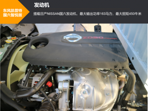 動力方面,新一代東風凱普特國六智悅版搭載的是日產NISSAN國六發動機,該發動機最大輸出功率由150馬力提升到163馬力,最大扭矩由370牛米提升到450牛米。