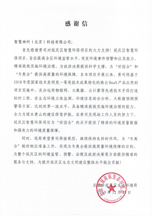 就在近日,神州控股再次受到北京市延慶區(qū)生態(tài)環(huán)境局表彰與感謝。