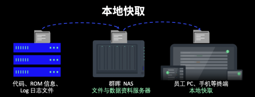 京東方自動化生產制造中需要實時監測生產線上的產品和數據,包括Log 日志文件、設備上的數據以及不良品照片等,每天產生的數據量非常大,以往采用的分布式存儲成本高昂,而且管理起來非常麻煩。在導入了群暉存儲服務器后,京東方既可以將代碼、Log 文件、 ROM 信息等,集中存儲到群暉存儲服務器中,以便于數據的統一管控。京東方將群暉存儲服務器作為日志服務器,并且將存儲映射到本地 PDA 搭配生產看板,讓生產部門的同事可以通過看板直觀地查看日志文件,了解到哪些設備存在問題,及時溝通并分析問題出現的原因,后期如何有效預防以及周期管理,數據呈現非常直觀。