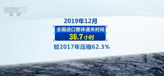 海關總署今天公布:2019年12月,全國進口整體通關時間36.7小時,較2017年壓縮62.3%;出口整體通關時間2.6小時,較2017年壓縮78.6%。