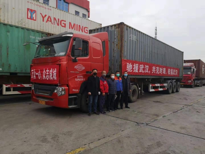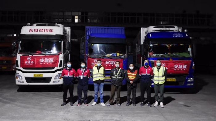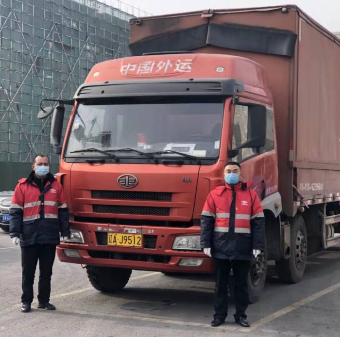 1月29日,中國外運響應“災急送”應急支援物資需求,緊急調動六輛卡車發運雙氧水物資至武漢應急指揮中心。