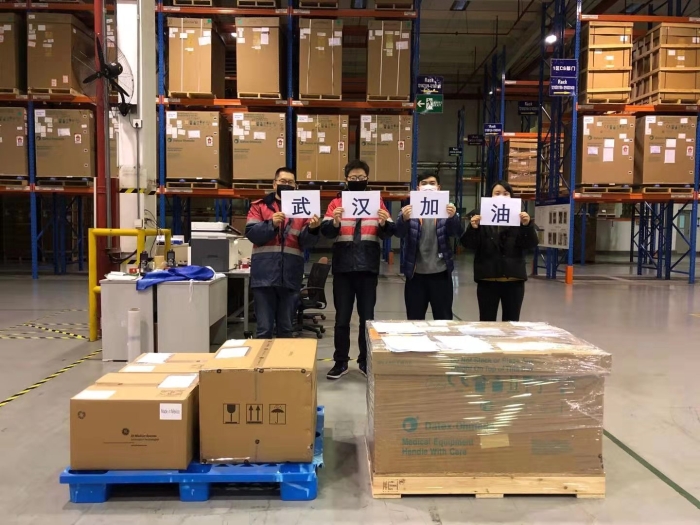 1月29日,中國外運運輸的GE客戶的呼吸機和監護儀等物資已抵達武漢。