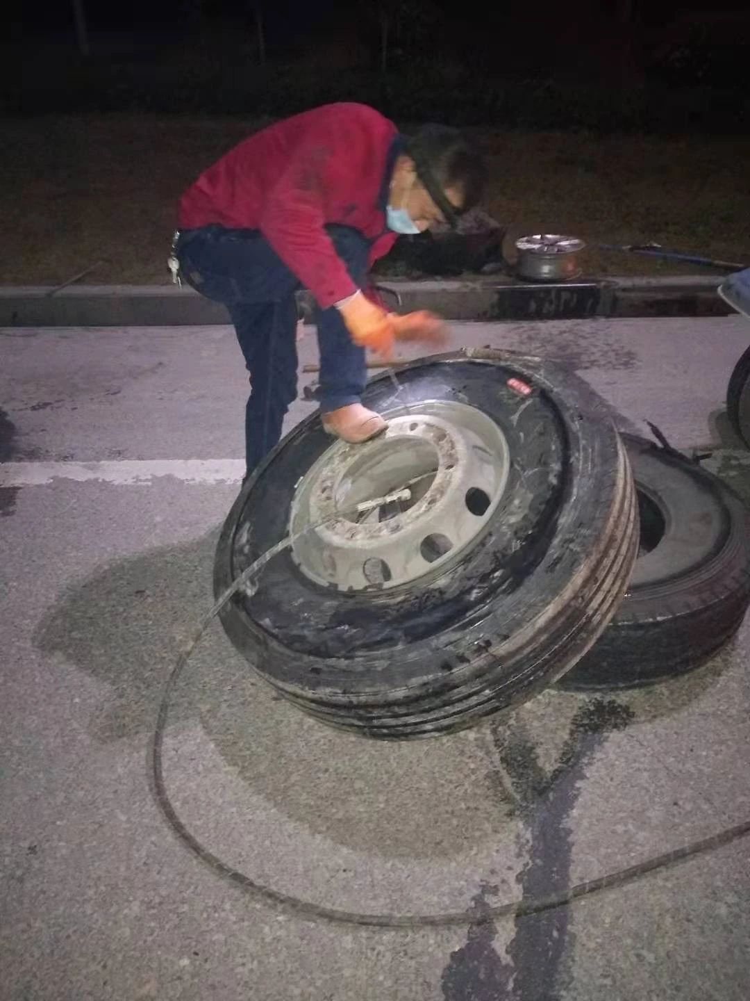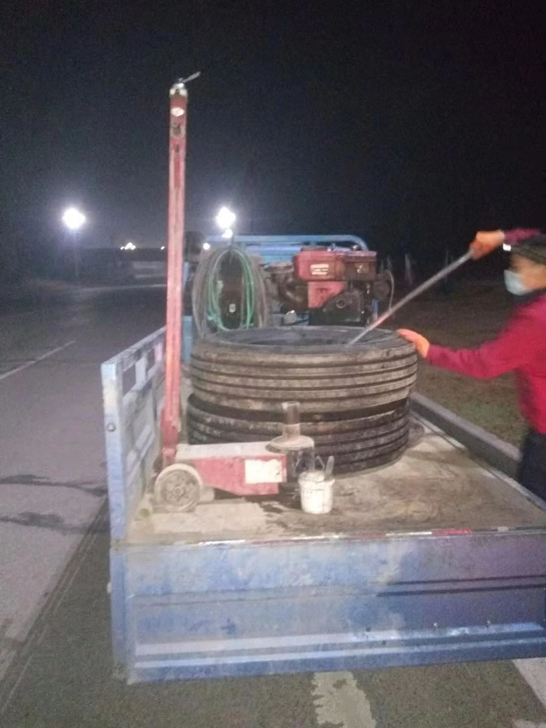 經過1小時時間的施工為該車更換了輪胎。凌晨3:30分,羅師傅的物資運輸車輛順利啟動繼續上路。
