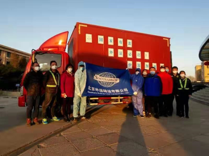 1月31日,中國外運接受北京市相關單位委托,運送企業捐贈的救援物資。當日下午17時裝載物資的車輛連夜從北京出發,2月1日上午11時許抵達湖北省十堰市鄖陽區衛生健康所,完成近757公斤200桶84消毒液等緊缺的疫情救援物資的運輸任務。